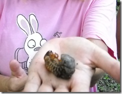 Nous aurions pu aller encore plus loin dans nos découvertes. Oser plus. Vaillamment goûter des mets inusités sous nos latitudes Européennes. Mais voilà, le courage a manqué. J’ai bien tenté de motiver les troupes mais là… personne n’a répondu: dans le fond du jardin, Rafaël a sorti d’un grand tas de compost végétal un “repas” hyper protéiné qui se déguste cru ou grillé, le voilà: